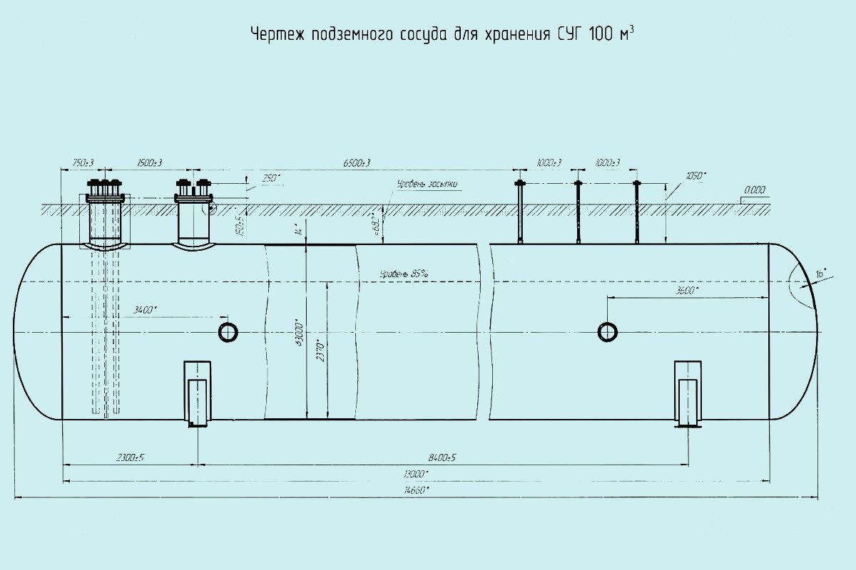 Покупая сосуд под сжиженный газ следует учитывать, что заполнение его объема разрешено не более чем на 85%. В сосуде объемом 100 м³, будет обеспечено хранение 85 м³ СУГ.